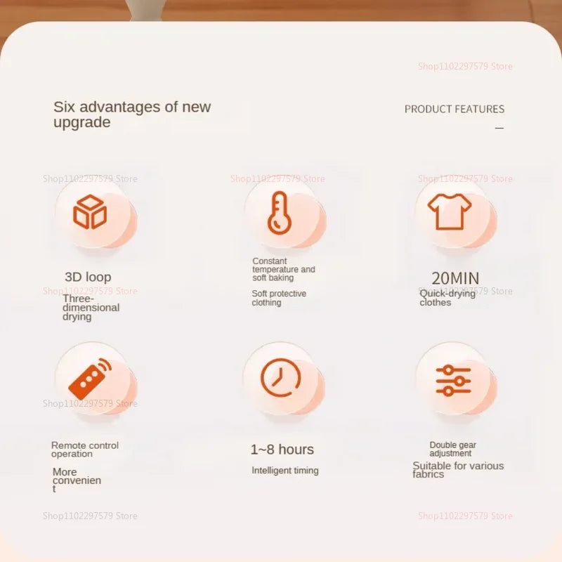 قم بتحديث إعدادات الغسيل لديك باستخدام مجفف الملابس المحمول المبتكر هذا - الذي يجمع بين السرعة والراحة والنظافة وكفاءة الطاقة للحياة العصرية أو السفر أو أنماط الحياة أثناء التنقل.