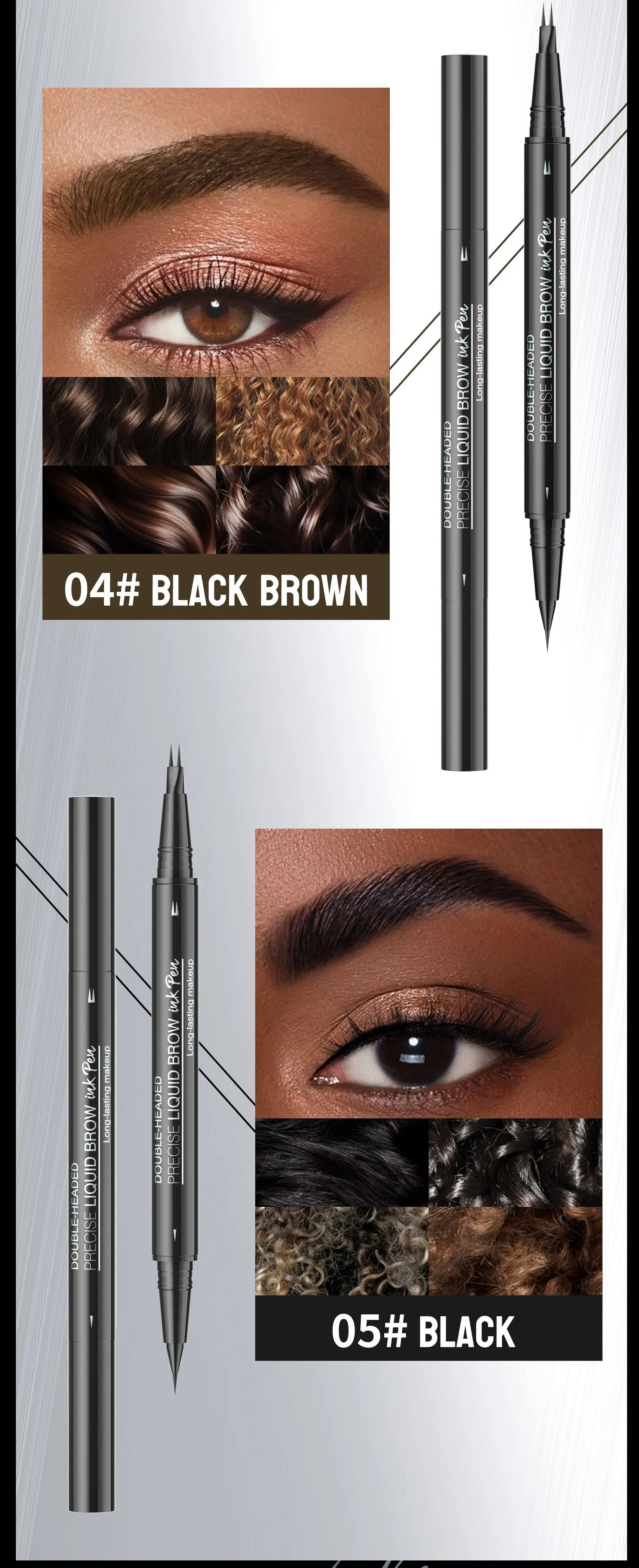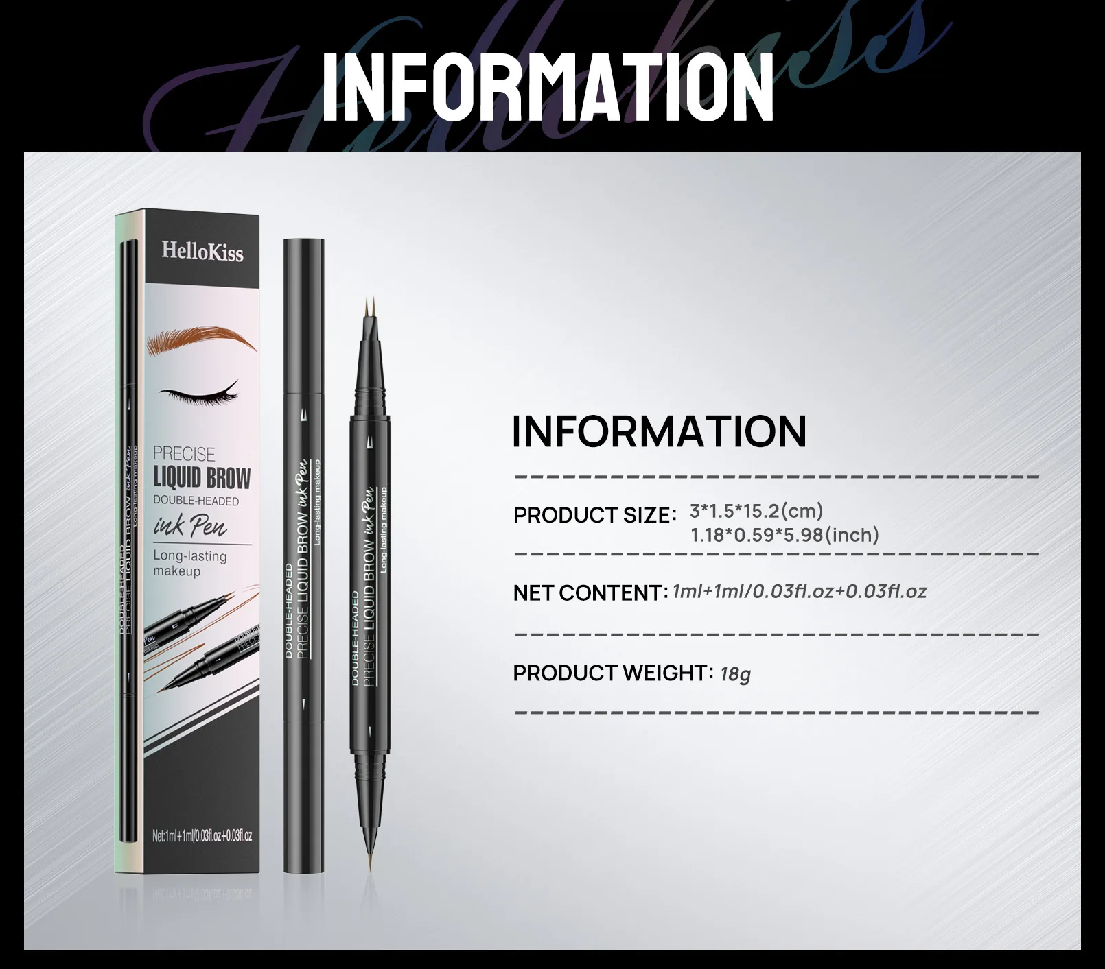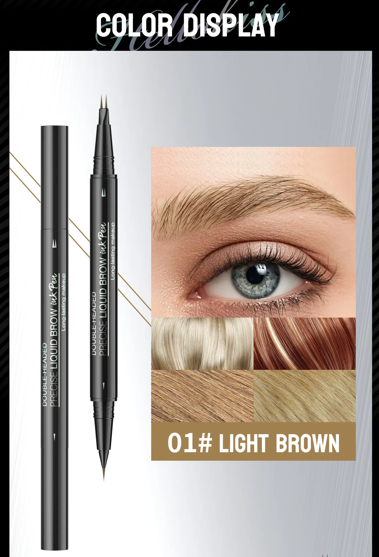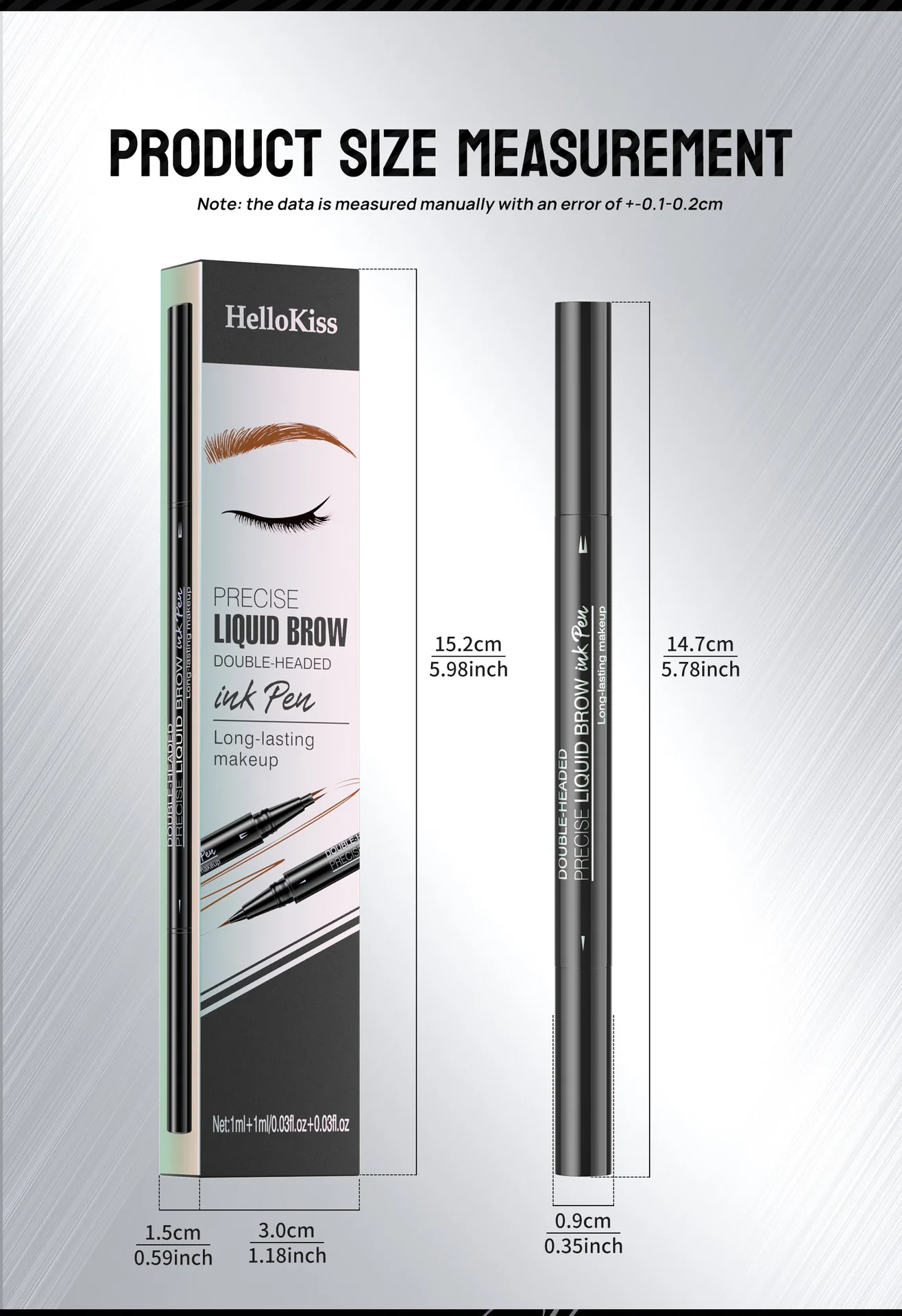 This innovative double-headed eyebrow pencil combines precise application with effortless blending, allowing you to create hair-like strokes or bold, defined brows in seconds. The liquid formulation glides smoothly onto the skin, dries quickly, and stays put all day without smudging, fading, or sweating away.