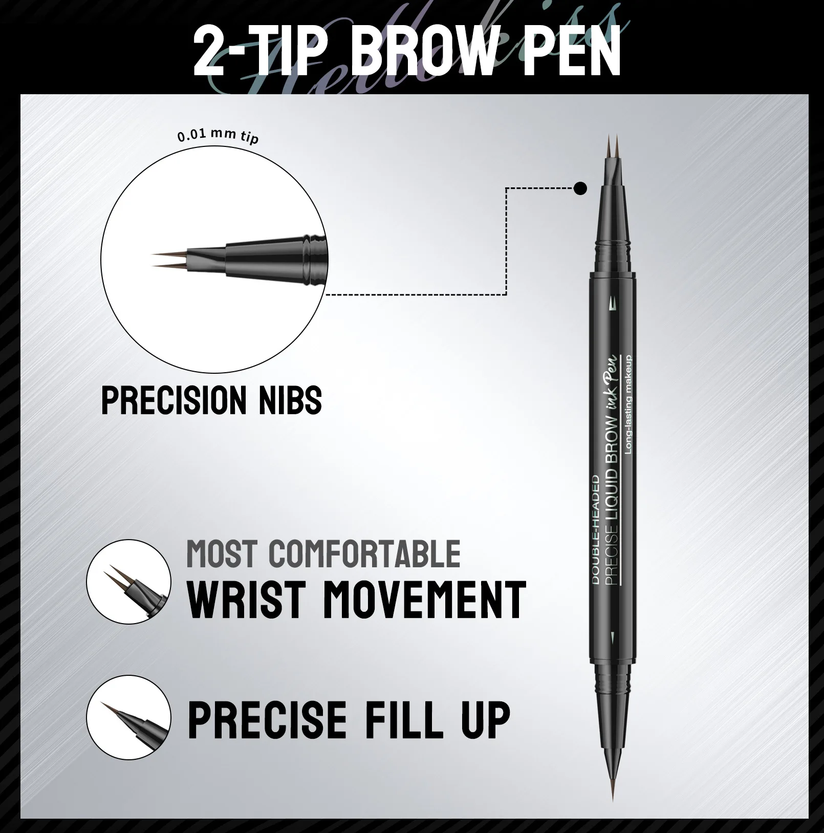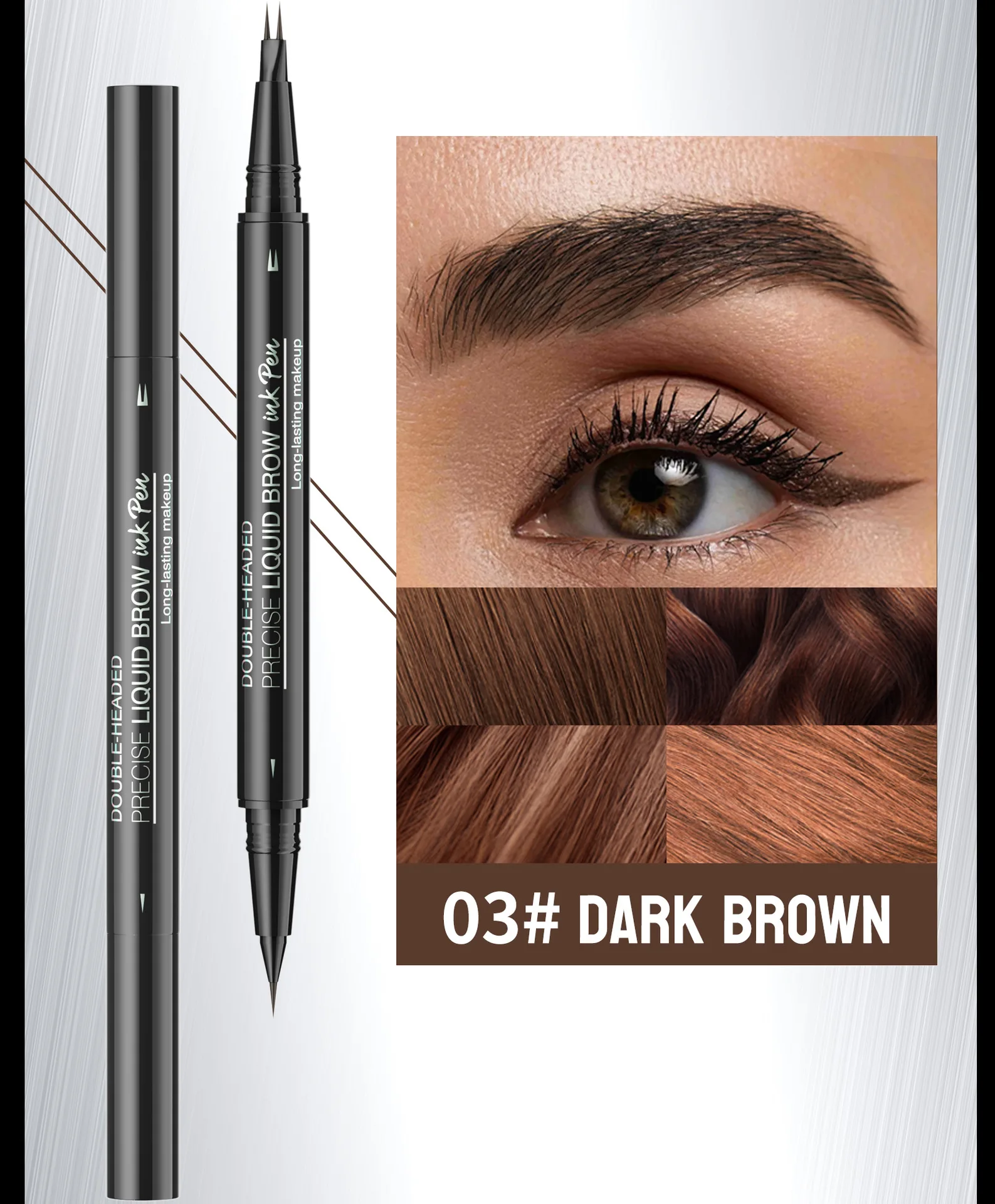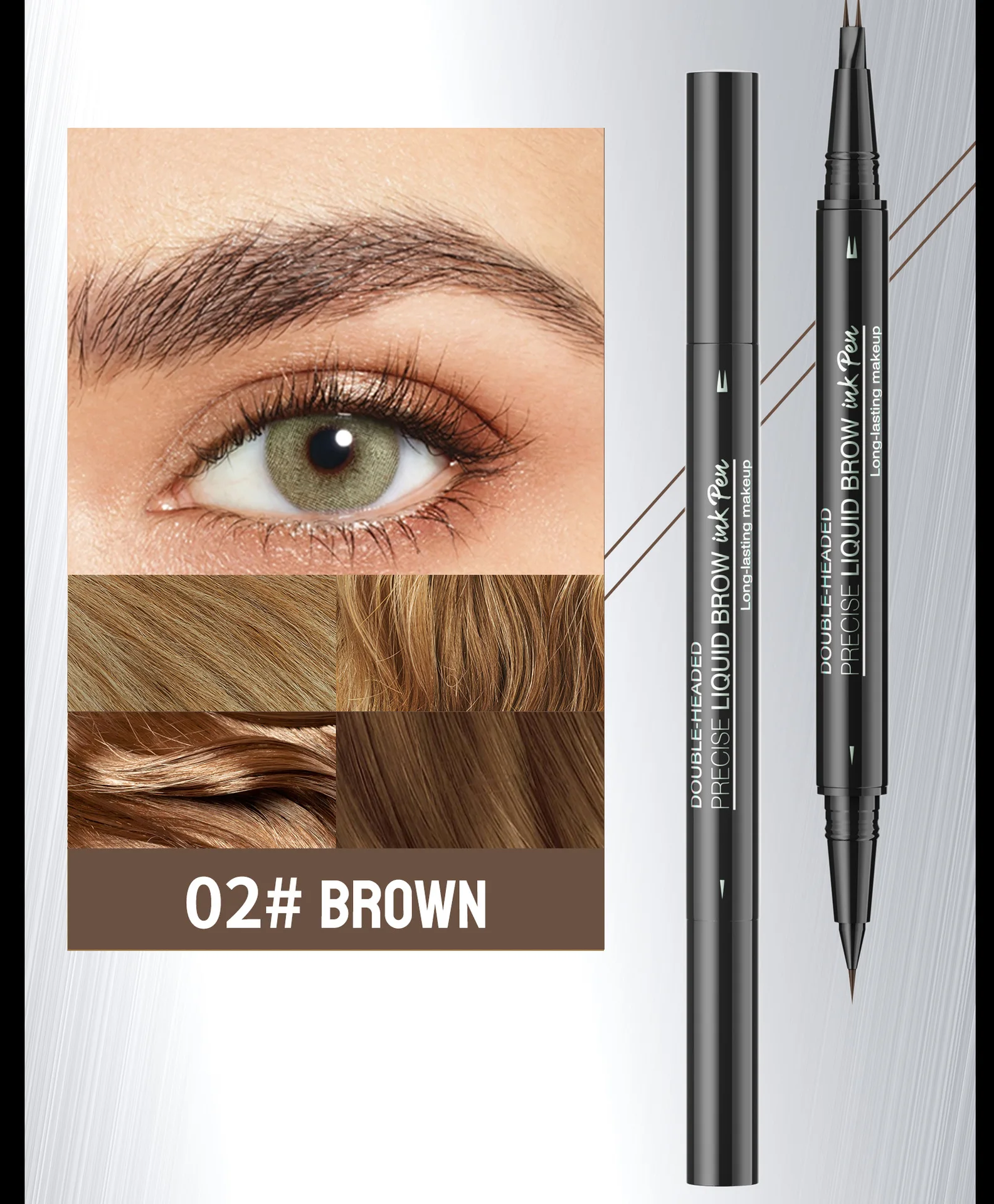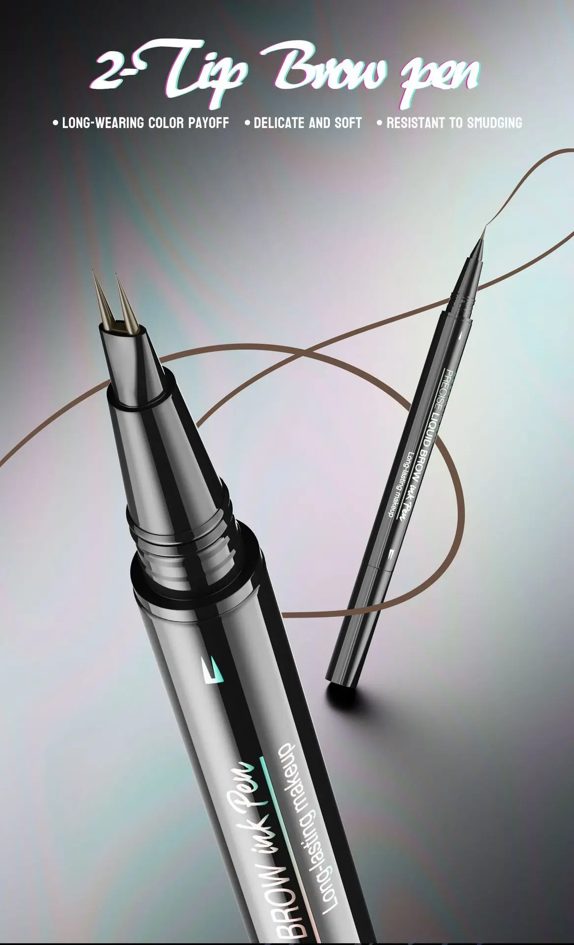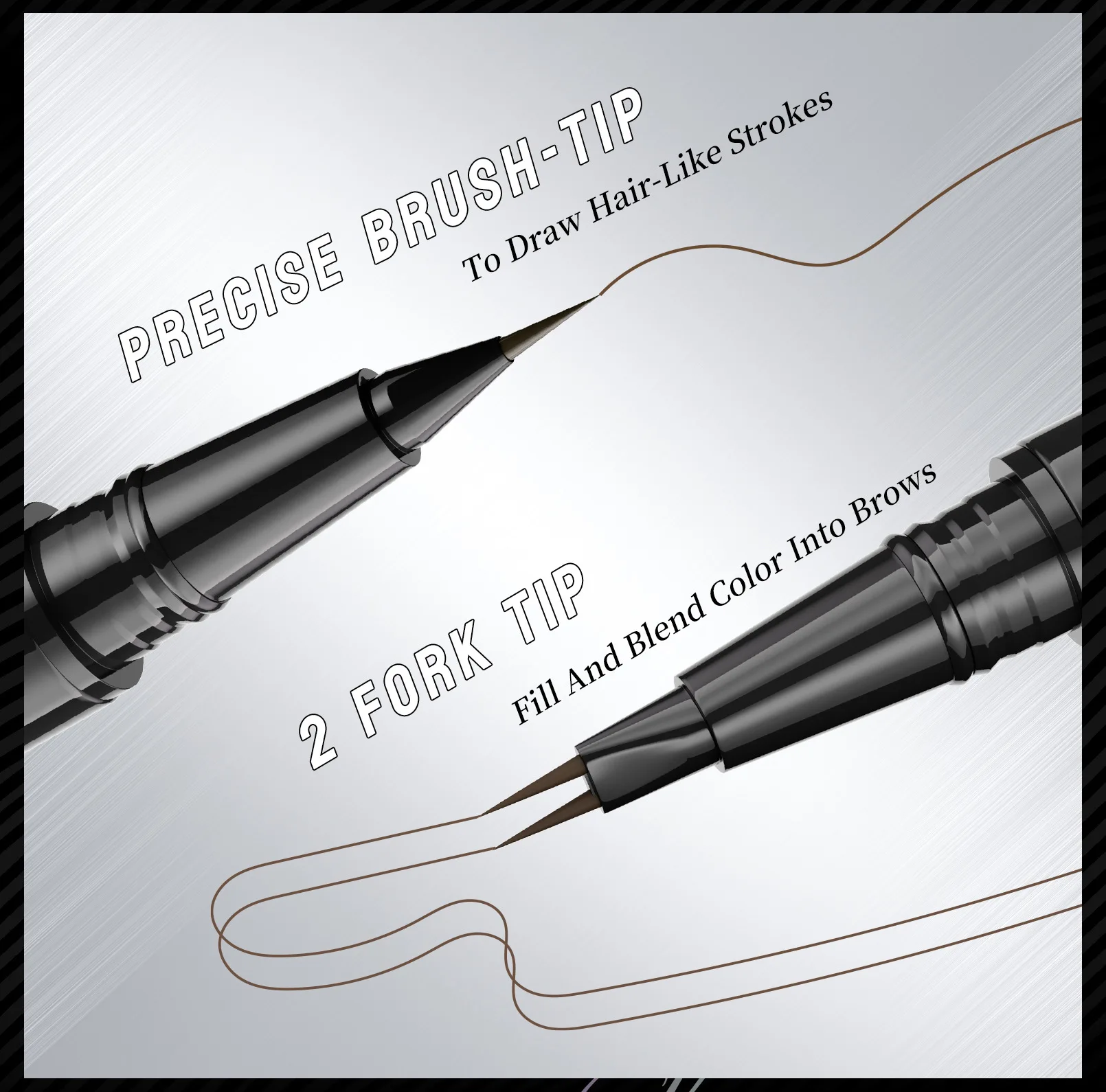 This innovative double-headed eyebrow pencil combines precise application with effortless blending, allowing you to create hair-like strokes or bold, defined brows in seconds. The liquid formulation glides smoothly onto the skin, dries quickly, and stays put all day without smudging, fading, or sweating away.